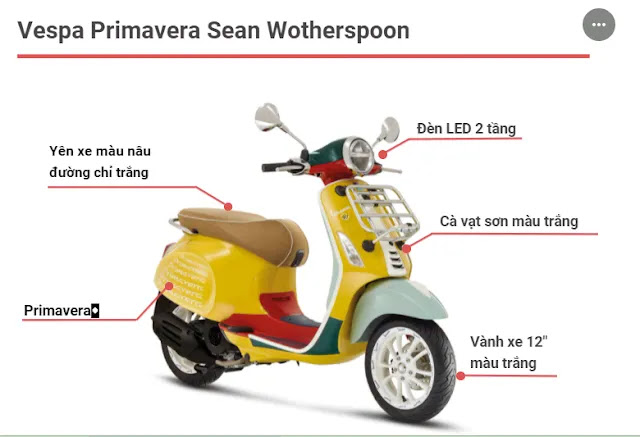 Đặc biệt là Vespa Primavera Sean Wotherspoon sở hữu phong cách rất riêng biệt và cá tính thì mới được yêu mến tại Việt Nam.